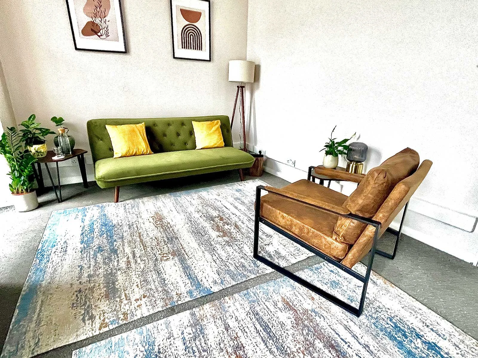 The room is bright and modern, with a contemporary feel, clean lines, and carefully chosen furniture that creates a calm, unhurried atmosphere.